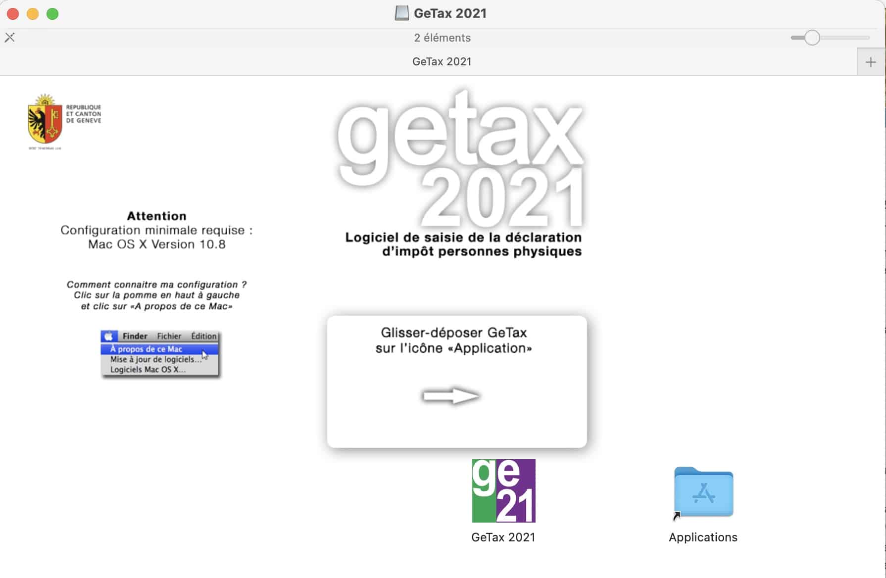 Faites ensuite un Glisser-Déposer de l’icône de GeTax2022 sur le dossier Application situé juste à coté dans la fenêtre.