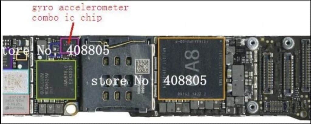 5. Position sur l’iPhone : Le gyroscope est situé à l’intérieur de l’iPhone, généralement à proximité de la carte mère. Il est intégré de manière à détecter les mouvements de l’appareil autour de ses trois axes.